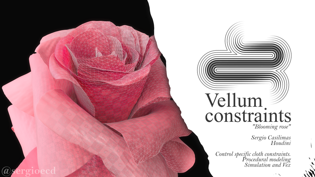 You'll see the process of procedurally modeling a rosebud, including UVs and appropriate geometry for simulating a blooming rose using the Vellum solver in Houdini. This kind of motion is achieved by selecting and controlling specific constraints on geometry so you can modify their properties inside a cloth simulation. By using gradients and a little bit of vector math, you can meticulously select and control Vellum constraints.